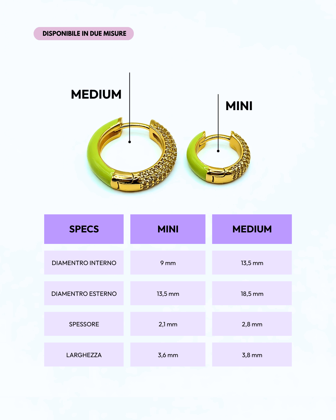 L'Hoop Gems Matcha (Winter Edition) è per chi cerca un look fresco e naturale. Realizzati in argento 925 placcato oro 18K, questi orecchini a cerchio presentano un lato smaltato verde matcha e l'altro arricchito con zirconi champagne, creando una combinazione delicata e sofisticata.
