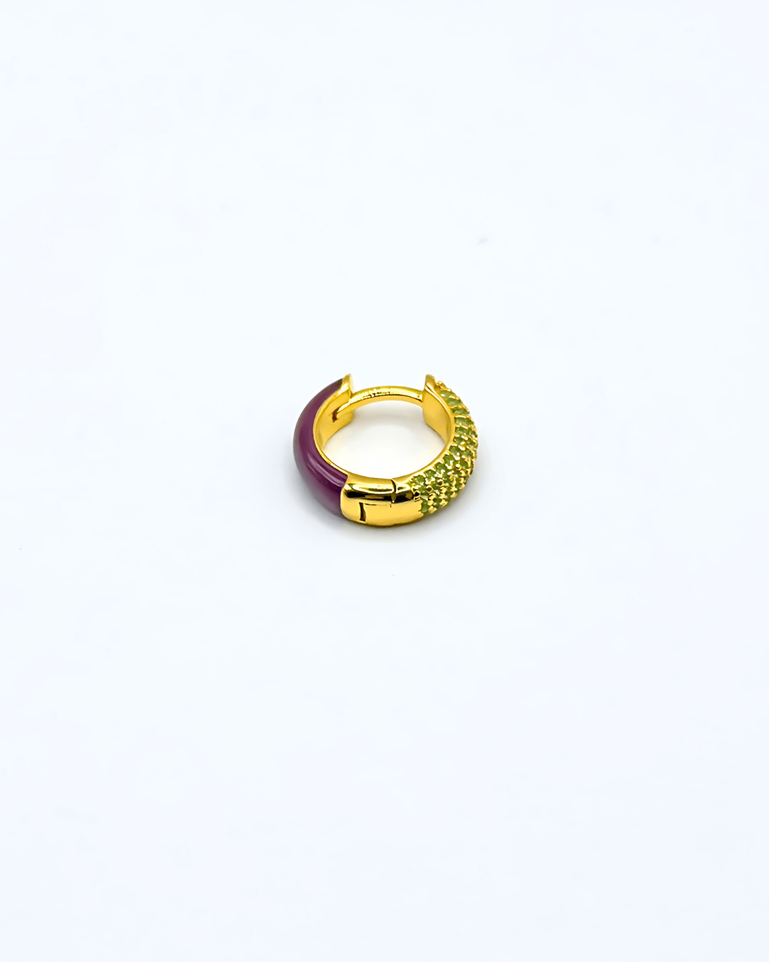 Hoop double-face, un lato smaltato viola plum, l'altro con zirconi verde mela.
