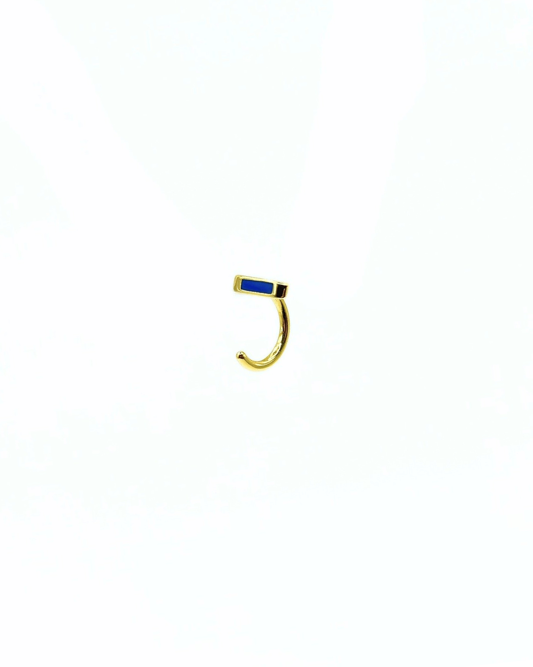 Orecchino a cerchio aperto reversibile con barretta smaltata blu.