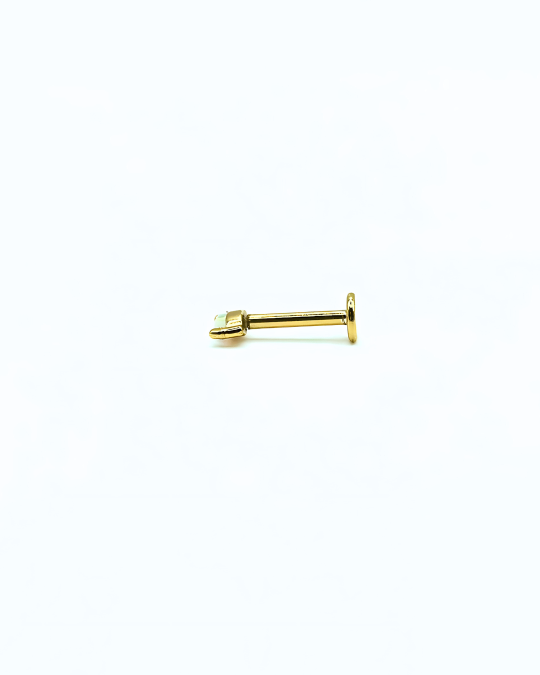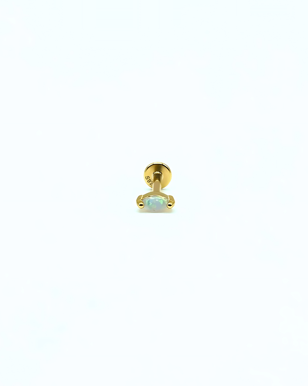 Il Beam della Opal Series di MOOPS® è il piercing perfetto per chi cerca un design minimalista ma luminoso. Con un singolo opale taglio marquise, realizzato in argento 925 placcato oro 14K, questo piercing cattura la luce in modo delicato. La barra da 8 mm e calibro 1,2 mm garantiscono una vestibilità sicura e confortevole grazie al design flatback.