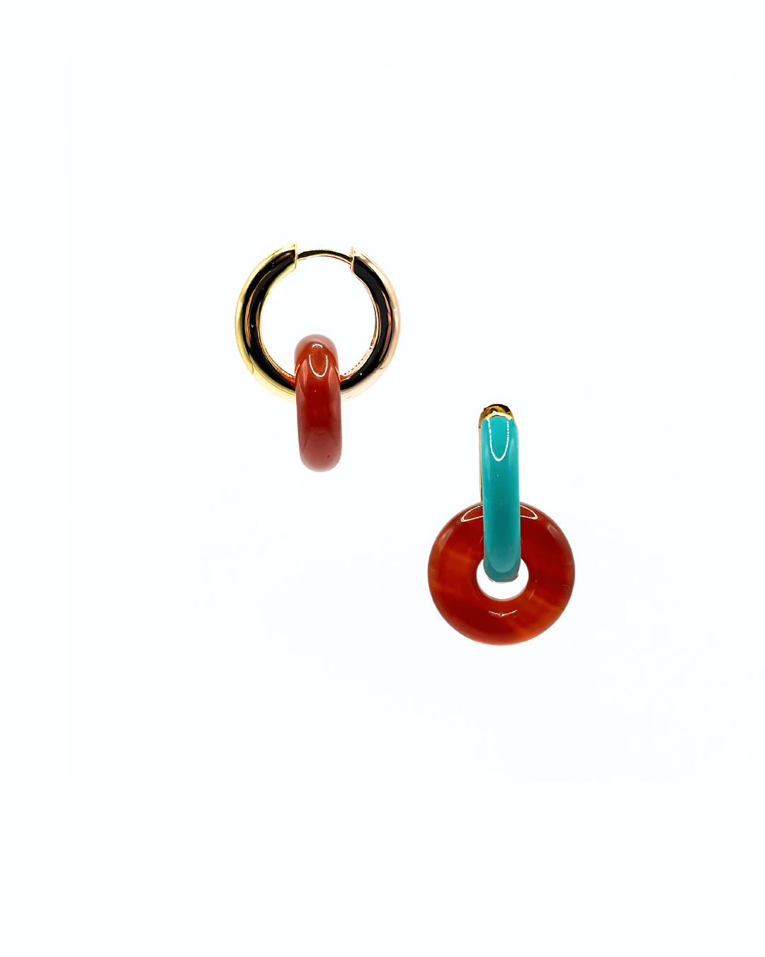 Con diametro interno di 5 mm e diametro esterno di 15 mm, il Donut Corniola si abbina perfettamente ai tuoi hoops medium, creando una combinazione audace e vibrante. Un design perfetto per chi cerca un charm che sprigioni energia e vitalità.
