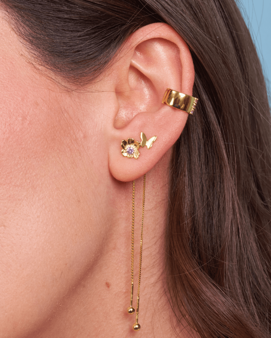 La pallina che si avvita sulla bacchetta ti permette di personalizzare il look, adattandolo a più buchi o indossandolo come piercing singolo. Il fiore placcato oro giallo 18K con la pietra ametista dona un tocco di colore e luminosità, aggiungendo eleganza al tuo stile.